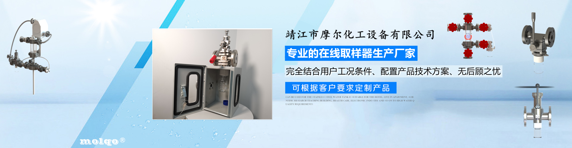 靖江市摩爾化工設備有限公司位于蘇中明珠——江蘇省靖江市城南工業園區東進路北側天元艾爾瑞內,另有生產基地位于靖江市經濟技術開發區新號路1號鼎電科技園內。我公司由數名長期從事化工生產、氟塑襯里模具開發以及機械自控設備的專業人員共同合作成立,致力于提供客戶最優的高效在線取樣、反應及精餾分離設備,為客戶提供合理的設備選型方案,以幫助客戶提高綜合生產效率以及改善生產現場環境為目標。 本公司主要制造及銷售的產品有:釜用在線取樣裝置,管道取樣閥,釜用清洗噴淋裝置、搪玻璃設備、GMP專用搪玻璃設備、氟塑襯里設備、攪拌器、釜用機械密封、氣動閥門及搪玻璃管道、襯氟閥門管道、非標不銹鋼容器,精餾塔塔器、片式冷凝器及PTFE密封件、鋯、鈦、鉭、鎳等加工件制品。我司是一家集研發銷售、設計咨詢服務于一體的專業···| 汤阴县 | 澄迈县 | 梧州市 | 南涧 | 兖州市 | 固镇县 |